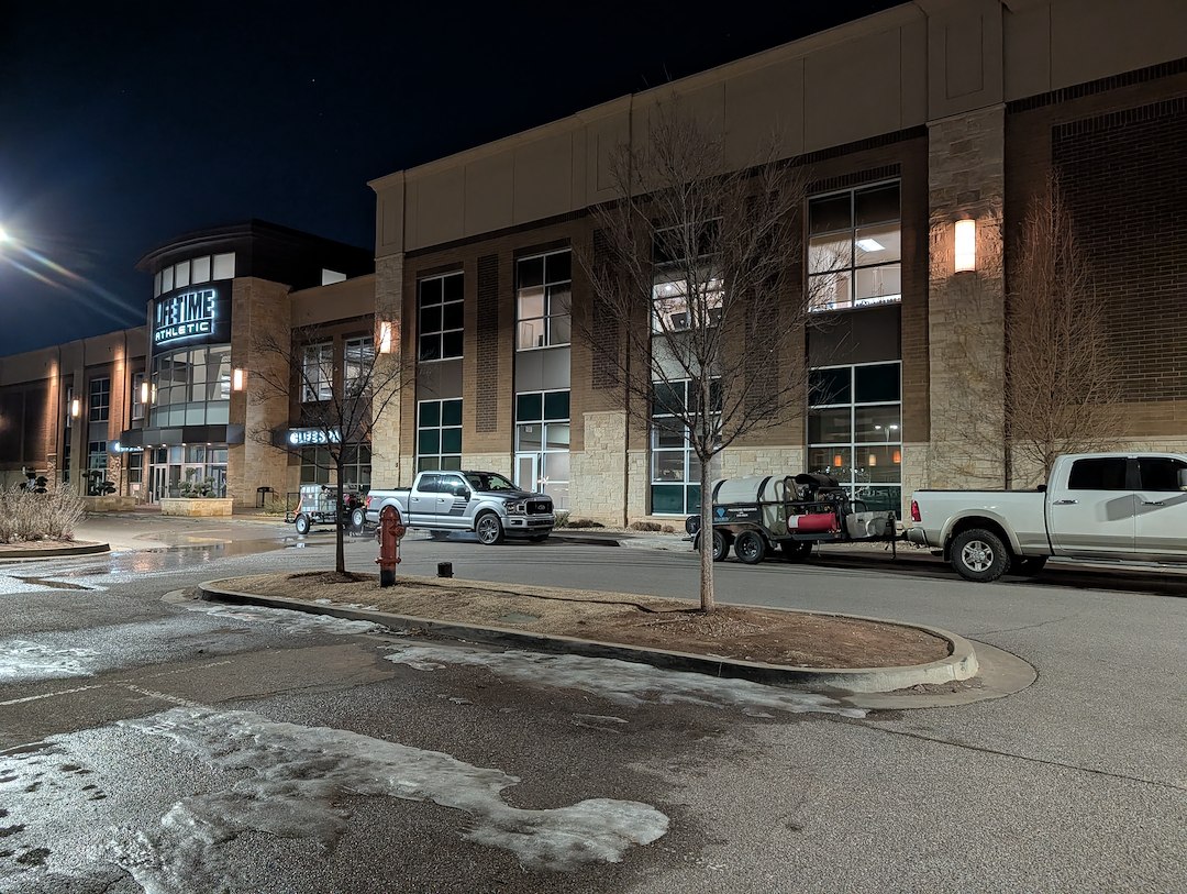 This commercial fitness center needed their sidewalk and entranceway pressure washed after a recent ice storm and freeze. Salt is often applied for these type of weather situations and leave some staining after the snow and ice melts off. Commercial pressure washing is something that often not many people may know about, but is a service that adds value and curb appeal to your business. This commercial pressure washing was done for the largest fitness center in the Edmond, Oklahoma City area